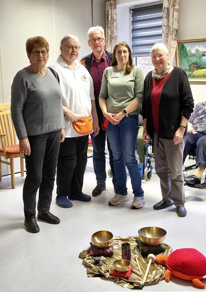 Die Frauen des Inner Wheel Clubs Nordheide überreichten gemeinsam mit Mary Driftmann den Bewohnerinnen und Bewohnern sowie den Mitarbeitenden der Betreuung ein klangvolles Geschenk: mehrere Klangschalen inklusive passendem Zubehör. Diese wurden noch am selben Tag eingeweiht und fanden großen Anklang.