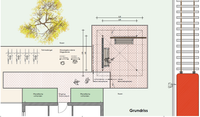 Es entstehen ein befestigter, barrierefreier und überdachter Haltepunkt und eine Fläche für Fahrradständer und Infotafeln. Die Rasenfläche und die umliegenden Bäume werden ebenfalls in das Konzept einbezogen und entsprechend angelegt und erhalten.
