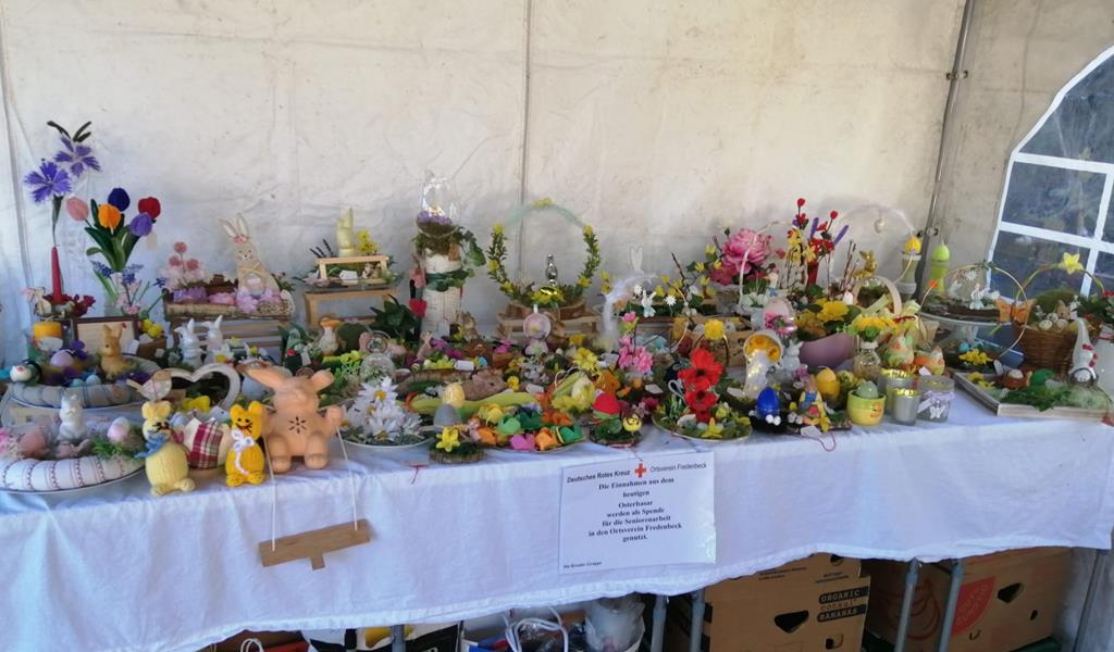 Im Mittelpunkt stehen Angebote rund um das Osterfest. Besucher:innen finden unter anderem österliche Dekorationen, kleine Holzarbeiten und Geschenkideen. Ergänzt wird das Sortiment durch einen Verkaufsstand mit Frühjahrsblumen, der farbliche Akzente setzt und den Beginn der warmen Jahreszeit unterstreicht.