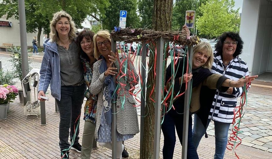 Endlich wieder Schützenfest in Bremervörde, da sind sich alle Mitglieder der Gemeinschaft Alte Straße einig. Und weil für alle sichtbar sein soll, dass die Geschäftsleute die Schützinnen und Schützen unterstützen und sich auf tolle Festtage freuen, haben fünf fleißige Frauen um Anzeiger-Objektleiterin Birgit Wrissenberg die Alte Straße schnell noch in den Farben der Schützengesellschaft geschmückt.