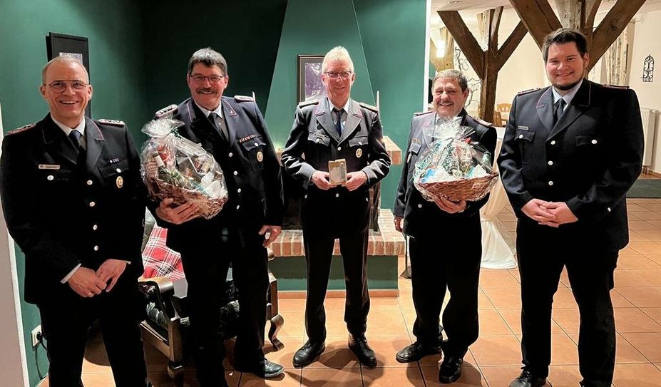 Folgende Ehrungen konnte der Gemeindebrandmeister Mario Jagels vornehmen: Erich Engelke wurde für 60 Jahre Mitgliedschaft geehrt, Wilfried Meyer für 50 Jahre und Michael Bock für 40 Jahre Zugehörigkeit. Sie erhielten als Dank und Anerkennung jeweils eine Urkunde und eine Nadel. Für eine 25-jährige Mitgliedschaft wurden Holger Engelke und Rene Zuidema geehrt und erhielten ebenfalls eine Urkunde plus Nadel. Wolfgang Bock und Manfred Poppe erhielten je einen Präsentkorb als Dank und Anerkennung für jahrelang geleistete Dienste als Führungskräfte. Dieter Hellmers erhielt für geleistete Arbeit im Kommando ein Präsent. Zum Schluss gratulierte der Ortsbrandmeister Andreas Kahrs allen Geehrten und Beförderten und bedankte sich bei den Mitgliedern, insbesondere bei den Funktionsträgern.