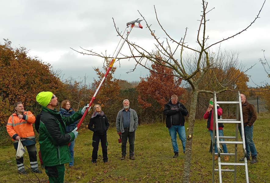 Bremervörde. Kürzlich haben Naturfreunde eine Vielzahl von Apfelbäumen unter Anleitung des gelernten Gärtners Torsten Brunkhorst mit dem richtigen Schnitt gepflegt. Solch ein von der NABU Umweltpyramide organisierter Kurs findet regelmäßig statt, als ein wichtiger Beitrag zum Erhalt von Streuobstwiesen und somit auch zur Förderung dieser Flächen. Gleichzeitig dient die ausgiebige Praxis den Teilnehmenden zur Übung, bevor es zu Hause an die eigenen Bäume geht. „Einige Bäume wachsen stetig in die Höhe ohne Früchte zu tragen, andere produzieren nur kleines Obst“, berichtet Brunkhorst. Mit dem richtigen Wissen kann man daran durch einen fachgerechten Schnitt etwas ändern. Außerdem trägt der Schnitt zur Verjüngung bei und dient dem Erhalt des Obstbaumes.