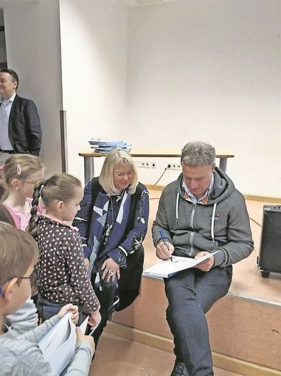Der Höhepunkt war die Signierung der Bücher durch Marco Bode, ehemaliger Profi-Fußballspieler, heute Aufsichtsratsvorsitzender des SV Werder Bremen. Alle Kinder reihten sich ein und freuten sich über seine Unterschrift.
