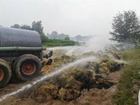 Aufgrund des massiven Löscheinsatzes mit mehr als 60 Einsatzkräften aus dem Stadtgebiet konnte ein Übergreifen auf ein Gebäude verhindert und das Feuer schnell unter Kontrolle gebracht werden. Die Brandbekämpfung wurde durch einen Radlader und ein Güllefass mit Wasser beschleunigt. Es dauerte aber trotzdem ca. 4 Stunden an, bis es „Feuer aus“ hieß. Mit dem Radlader wurde das brennende Stroh auseinandergezogen und auf einen Sandplatz gefahren. Hier löschte man mit Strahlrohren und dem Güllefass die Glutnester ab.
