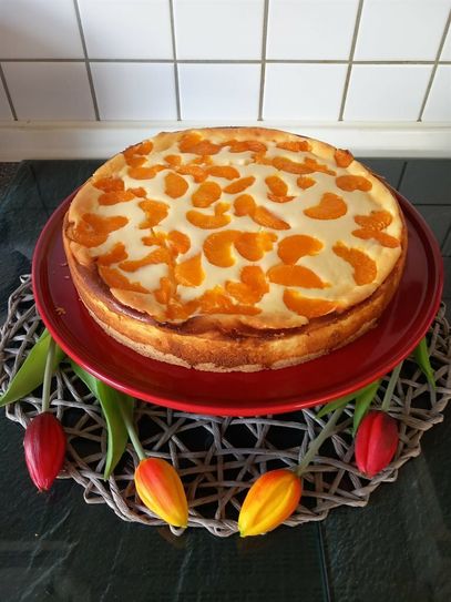 Aus den Zutaten für den Teig stellen Sie einen Mürbeteig her. Ich habe ihn kurz mit dem Mixer und Knethaken verrührt, dann etwas durchgeknetet. Den Teig streichen Sie auf den Boden der Form. Quark, 2 Eier und 140 g Zucker werden verrührt, bis sich der Zucker aufgelöst hat. In einer zweiten Schüssel verrühren Sie Vanillepuddingpulver mit Schmand, Öl und Milch. Jetzt werden beide Cremes miteinander schön glatt gerührt. Creme in die Form gießen, glatt streichen und mit den Mandarinen belegen. Der Kuchen wird 60 bis 65 Minuten gebacken. In der Form auf einem Kuchenrost lassen Sie ihn vollständig abkühlen. Wenn er Zimmertemperatur hat, schmeckt er uns sehr gut. Vor allem ist das ein Kuchen ohne großes Trara. Probieren Sie es aus.