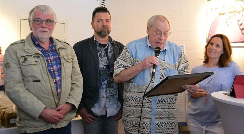 Erwin Bienewald, Geschäftsführer von Maribondo da Floresta, hieß alle Besucher herzlich willkommen, darunter auch den stellvertretenden Bürgermeister Jochen Semken. An ihn richtete Dr. Erwin Bienewald auch den Vorwurf, die Gemeinde habe einen integrativen Eissalon verhindert. „Wir wollten einen Eisbetrieb mit behinderten jungen Menschen machen.“ Die Gemeinde sei der Meinung gewesen, hier dürfe man keine Gastronomie betreiben. Doch dann habe man sich zusammengesetzt und erreicht, „dass wir nun eine Galerie machen dürfen mit 18 Sitzplätzen und zwei Außenplätzen“. Das bedeute, dass Besucher sich die Bilder anschauen und dann Kaffee trinken dürften - und nicht umgekehrt, sagte er zur allgemeinen Erheiterung. „Das ist jetzt erlaubt und das kommt uns hier sehr entgegen.“