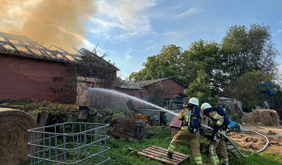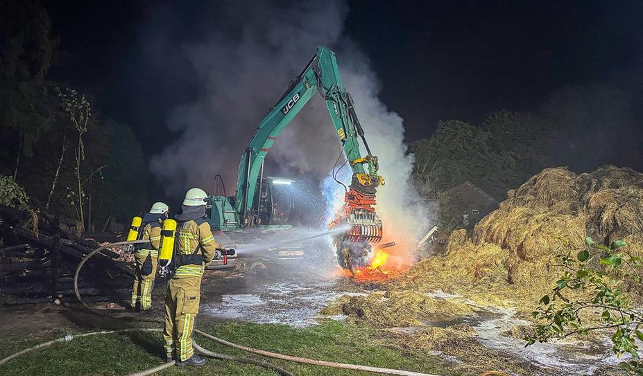 Beim Eintreffen der ersten Einsatzkräfte war bereits eine Scheune in Vollbrand, in der Strohballen gelagert waren. Glücklicherweise befanden sich keine Menschen mehr im Gebäude; auch zahlreiche Tiere konnten rechtzeitig in Sicherheit gebracht werden. Dies erlaubte den Einsatzkräften, sich voll und ganz auf die Brandbekämpfung zu konzentrieren.