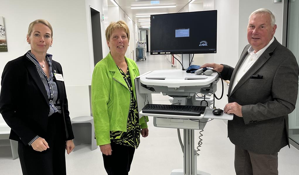 „Die orthopädische Praxis vom Facharzt für Orthopädie und Unfallchirurgie, Sportmediziner Herrn Chatzoglou, erfreut sich großer Beliebtheit“, weiß Sonström. Mittlerweile habe man außerdem alle Stationen mit mobilen Visitewagen ausgestattet, die die Patientendokumentation für die Pfleger:innen erheblich erleichtern. „All das funktioniert aber nur dank der hochengagierten Mitarbeiter, die sich täglich für das Wohl der Patienten einsetzen“, lobt Wilfried Pallasch vom Krankenhausausschuss.