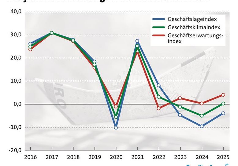 Laut der aktuellen Studie „Wirtschaftslage und Finanzierung im Mittelstand, Herbst 2025“ der Creditreform-Wirtschaftsforschung zeigt sich erstmals seit längerer Zeit ein zaghafter Aufschwung: Der Creditreform Geschäftsklimaindex (CGK), basierend auf einer Befragung von über 1.200 Unternehmen, liegt erstmals seit 2022 mit 0,1 Punkten leicht im positiven Bereich - im Vorjahr waren es minus 4,8 Punkte.