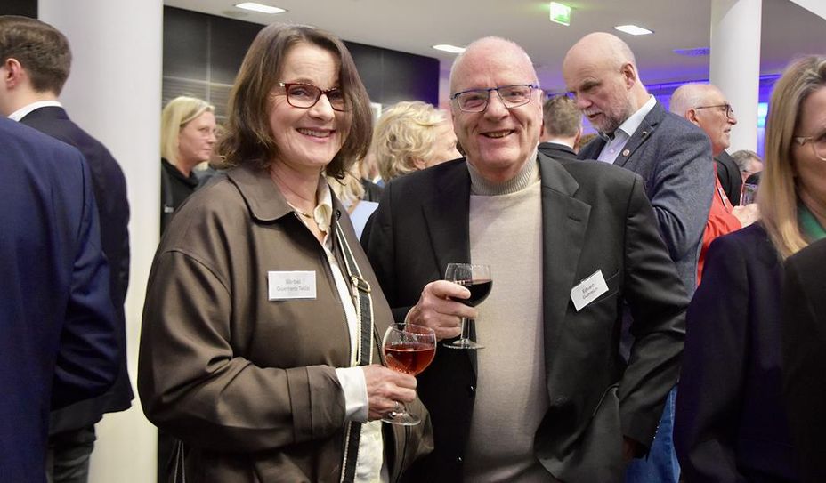 Einem kurzen Streifzug durch das Volksbankjahr 2025 folgte der Blick nach vorn. Ab Mitte Februar werde sich die Volksbank-Niederlassung in Lilienthal in einem komplett neuen Erscheinungsbild präsentieren. Die Flächen werden umfassend modernisiert, regionale Themen finden sich dann in der Wandgestaltung ebenso wieder, wie in der Auswahl der Möbel. Es sei dann ein Standort mit Wiedererkennungswert und echter Lilienthaler Handschrift. „Nach der Eröffnungsfeier werden wir in Lilienthal unsere MitgliederOpen durchführen. In Osterholz-Scharmbeck ist dieses Format für den September geplant.“ Im Oktober folgt ein weiterer fester Termin im Volksbank-Kalender: die Präsentation der neuen und inzwischen 28. Weinedition. „Diese Tradition verbinden wir seit Jahren mit der Zusammenarbeit mit regionalen Künstlerinnen und Künstlern – und möchten diese nicht mehr missen.“ Anschließend blickte Corvin Borgardt, Geschäftsführer der Bremervörder Zeitung, verbal noch einmal zurück und nach vorn, bevor die Gäste in den Informations-Austausch gingen.