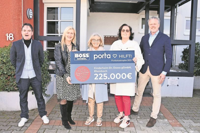 Die Geschäftsführer der Einrichtung, Edith und Oliver Stölben, zeigten sich dankbar. Mit dem Geld werden die noch immer stark sichtbaren Folgen der Flutkatastrophe vom Juli 2021 beseitigt. Das Geld wurde im Zuge der „Aktion Aufrunden“ in den 26 porta Einrichtungshäusern und mehr als 100 SB-Möbel BOSS Märkten gesammelt. Die Unternehmensgruppe verdoppelte die eingenommene Summe.