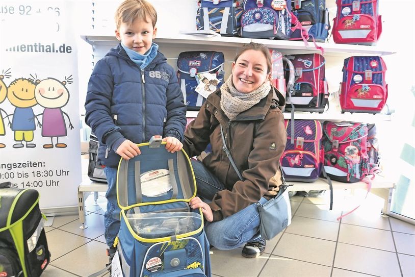 Tom hat sich ziemlich schnell für ein bestimmtes Modell entschieden, nicht nur wegen des Polizeiautos, das den Ranzen ziert, sondern auch wegen der zwei Gurte im Inneren, die die Federmappe halten. Auch Toms Eltern sind begeistert. Passender Sportbeutel, Federmappe mit Stiften und ein sogenanntes Schlampermäppchen sind im Preis inbegriffen. Und das Gute: Dieser Ranzen wächst mit - von der ersten bis zur vierten Klasse. Und er ist leicht. Manche Ranzen wiegen nur 800 Gramm. Ein zukünftiges Schulmädchen hat sich offenbar in ein lilafarbenes Modell mit Sternen und einem Einhorn verliebt, sie möchte den Ranzen gar nicht mehr absetzen.
