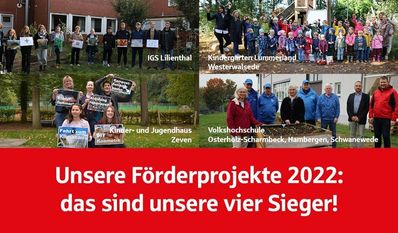 Unter dem Motto „Nachhaltigkeit“ fördert die Sparkasse Rotenburg Osterholz in diesem Jahr wieder vier besondere Förderprojekte mit einer Gesamtfördersumme von 20.000 Euro. Die Vergabe der Förderung erfolgt dabei in zwei Schritten. Im Schritt 1 werden 10.000 Euro zu gleichen Teilen an die vier ausgewählten Siegerprojekte verteilt. Im Schritt 2 treten die vier Siegerprojekte in einem Facebook-Voting gegeneinander an, in dem je nach Platzierung weitere 10.000 Euro vergeben werden.