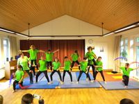 Vier Tage hatten zwölf Kinder im Alter von acht bis zwölf Jahren trainiert und geprobt. Unter Leitung von Nico Hussain, Sportlehrer aus Worpswede, lernte die Gruppe verschiedene Akrobatikfiguren: Beim „Stuhl“ stellt sich ein Kind auf die angewinkelten Oberschenkel des anderen, beide lehen sich zurück, halten die Balance und halten sich gegenseitig. Schnell war allen klar, wie wichtig es ist, vorsichtig zu sein und aufeinander zu achten , um nicht dem Partner weh zu tun.