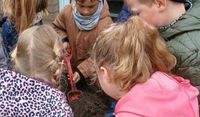 Der Beobachtungskasten ist schmal und durchsichtig und wurde von den Kindern mit Erde und Sand gefüllt. Dann sind sie auf die große Suche gegangen - fleißig wurde der Boden umgegraben und im Hochbeet der Kita nach Regenwürmern gesucht. Diese wurden dann vorsichtig in den Beobachtungskasten gelegt. Ein wenig Laub und Apfelschale kam als oberste Schicht hinzu, damit die Tiere ein gemütliches neues Zuhause mit genügend Nahrung erhalten. „Es war sehr spannend, den Regenwürmern dabei zusehen können, wie sie den Boden vermischen und die Pflanzenreste fressen“, berichtet Damaris Zipkat vom Erfolg der Aktion. So sehen und erleben die Kinder, wie wichtig gesunder Boden ist, in dem Regenwürmer leben können - denn sonst würden wir in einem Blättermeer untergehen. Natürlich wurden die Tiere nach einigen Tagen wieder vorsichtig in die Freiheit entlassen.