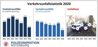 Im Jahr 2020 sank zum ersten Mal seit vielen Jahren sogar die Anzahl der Wildunfälle. Laut Statistik kam es zu 1.766 Unfällen. Im Jahr zuvor hatte es noch 2.022 Wildunfälle gegeben. Trotzdem liege der prozentuale Anteil der Wildunfälle im Landkreis Rotenburg bei knapp 35 Prozent des Gesamtunfallgeschehens. Dieses Phänomen lasse sich in der gesamten Region erkennen. Die Wild-Warnbeschilderung werde laufend an die entsprechenden Unfallorte angepasst. Die Polizei bittet in diesem Zusammenhang dringend um angepasste Geschwindigkeit in besonders betroffenen Bereichen.