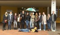 Mit einer gemeinsamen Aktion verabschiedeten sich die Schüler:innen gemeinsam mit ihren Lehrkräften vor den Herbstferien vom gelben Gymnasium und feierten den Abschied unter anderem mit einer Polonaise. Zuvor hatten sich die Klassen auf einem Plakat mit ihren Unterschriften verewigt. Organisiert wurde die Aktion von Zwölftklässlerinnen um Sophia Tietjen, Joshua Sint Nicolaas, Ole Sethmann und Jan Berkemeyer.