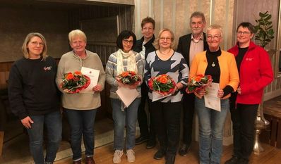 Bei den Wahlen konnte Sandra Franetzki als Beisitzerin wiedergewählt werden. Petra Baack ist neue zweite Vorsitzende und komplettiert den Vorstand wieder. Margret Müller wurde als neue Kassenprüferin gewählt. Für 25 Jahre Mitgliedschaft im Ortsverein wurde Kirsten Wester geehrt. Bereits 40 Jahre sind Käthe Franetzki, Ruth Tiedemann, Inge Steffens und Marlies Moritz im DRK Hollen. Alle erhielten zum Dank eine Urkunde, Nadel und einen Blumenstrauß. Die Termine für das laufende Jahr wurden ebenfalls bekanntgegeben: 26.Juli - Fahrradtour, 7. Oktober Herbstversammlung mit Frühstück, 20. Oktober - Lottoabend, 2. und 3. Dezember - Adventsfeier.