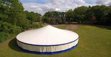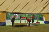 Fortan soll es jeweils um 11 Uhr im Zirkuszelt der FuB Oese feierlich werden. Fleißige Helfer hatten das fast 500 Quadratmeter große Rundzelt vor einer Woche auf dem Zeltplatz des Freizeitheims neben der Kirche errichtet. In der kleinen St. Christophoruskirche hätten in Zeiten von Mindestabständen nur noch 15 Personen Platz finden können. „Ich bin froh, dass unser Kirchenvorstand so mutig diesen besonderen Weg gewählt hat“, sagte Marco Müller, Pastor der Kirchengemeinde. „Bisher hatten wir im ganzen Kirchenkreis die kleinste Kirche. Von Pfingsten an dürfte Oese den Gottesdienstraum mit den meisten Plätzen im ganzen Kirchenkreis anbieten“, schmunzelt er.