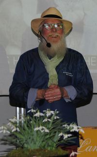 Nach einer Kaffeepause stellte Gartenbotschafter John Langley sich und seine Arbeit kurz vor. „Gartenbotschafter“ nennt sich der junggebliebene Gärtner und Florist, der sogar bei „Loki“ Schmidt die Schulbank drücken durfte. „Grünes Herz und blühende Vielfalt“ nannte der Wahl-Husumer seinen humorvollen und anschaulichen Vortrag. Ein Garten würde ein gutes Gewissen widerspiegeln, in dem Jung und Alt alles anfassen, begreifen, fühlen, schmecken und vor allen Dingen Verantwortung übernehmen kann, sozusagen eine große Wertschätzung für Blumen und Pflanzen, aber auch für kleine und große Tiere.