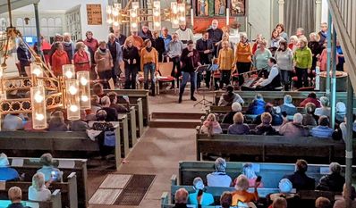 Am Wochenende brachten Kathrin und Simon Bellett mit ihrem Projektchor und ukrainischen Künstlerinnen etwas Licht in die dunkle Jahreszeit. „Ein Jahr nach dem Kriegsbeginn in der Ukraine wollten wir ein positives und kraftvolles Zeichen setzen“, sagt Simon Bellett. Darüber hinaus sollten Spenden für die Organisation „Ärzte ohne Grenzen“ gesammelt werden, um die Opfer des Krieges in der Ukraine zu unterstützen.