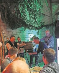 Im Anschluss übernahm DJörg die Musikbegleitung und es wurde kräftig getanzt. Den traditionellen Fassanstich übernahm in diesem Jahr der Leiter des Elmer Spielmanns- u. Musikzug, er konnte nach dem 4 Schlag verkünden „O´zapft is“. Zur Frage "Wer kann den Maßkrug am längsten stemme?" fand ein spaßiger Wettkampf teil, an dem nicht nur starke Männer teilnahmen.