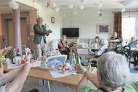 Im Anschluss an die Reden stießen Gäste und Bewohner:innen gemeinsam auf das Jubiläum an und es wurde ein wenig getanzt. Ein vielfältiges Kuchenbuffet konnte angeboten werden, da Mitarbeitende, Ehemalige sowie Angehörige fleißig gebacken hatten. Ein bunter Nachmittag begann mit Showeinlagen des Zauberers Hokus, Glücksrad, Kegel- Werfen und mehr.