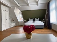 Alle Zimmer sind mit hochwertigen Boxspringbetten, eigenem Fernseher, WLAN und Einbauschrank ausgestattet, die Fenster können mit hochwertigen Rollos gut abgedunkelt werden. „Meine Gäste können entweder die Zimmer einzeln buchen oder das ganze Haus für eine kleine Gruppe“, verrät Stefan Börger, der viel Herzblut in dieses Projekt gesteckt hat. „Mir war es wichtig, den Charme des Hauses zu erhalten, die wunderschöne Eingangshalle, die Optik der alten Fenster wieder aufzugreifen und viele von den alten Möbeln aufzuarbeiten und mit dem modernen Interieur zu verbinden“.
