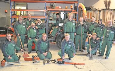 Unter ihrer fachmännischen Anleitung übernimmt die grüne Arbeitsgruppe heute zahlreiche Aufgaben. Unter anderem kümmert sie sich um die Pflege von Gartenanlagen sowie Wegepflege und Reinigungsarbeiten an Parkplatzflächen. Außerdem pflanzt das Team Hecken und ist zuständig für Rodung und Baumfällung sowie Baum-, Hecken- und Strauchschnitt und Häckselarbeiten.