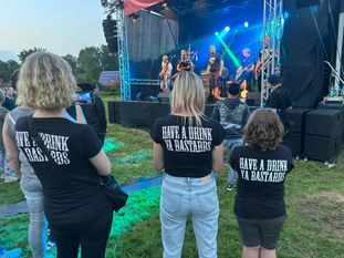 Die Veranstalter waren froh, dass auch dieses Jahr das Wetter mitspielte. Erst nachdem Muirsheen Durkin ihren Gig beendet hatten, öffnete der Himmel seine Schleusen und der Regen prasselte auf das Gelände. Alle verbliebenen Besucher und Besucherinnen fanden Platz in den Zelten und unter den Schirmen.