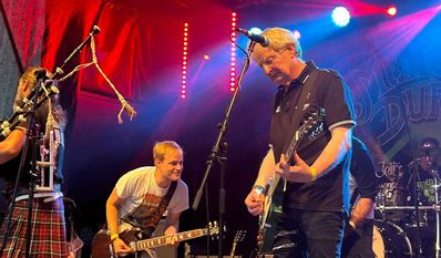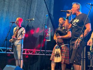 Muirsheen Durkin and Friends waren teilweise mit neun Musikern auf der Bühne vertreten und gaben von Anfang an Vollgas. Sie sind inspiriert durch irisch-keltisches Liedgut aus aller Welt und mischen es mit klassischen Rockinstrumenten wie Tin Whistle, Pipes, Banjo, Mandoline, Mandola und Akkordeon. Erstaunlich war, dass alle Musiker bei vollem Einsatz auf der Bühne ihren Platz fanden. Mit jedem Stück steigerte sich die Stimmung auf dem Gelände. Die Leute drängten zur Bühne, tanzten und hatten offensichtlich viel Spaß.