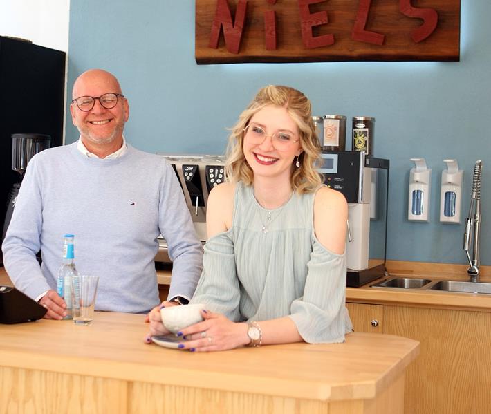 „Dieses Gebäude ist als Café bereits 2019 geplant und gebaut worden“, erzählt Louisa Happen, Betriebsstättenleiterin der Werkstätten. „Im Herbst nach der Errichtung hatten wir einen internen Anlauf mit Frühstück und Café für Klienten, Bewohner und Beschäftigte. Wenn alles intern eingespielt gewesen wäre, sollte unser Café Niels öffentlich werden.“ Doch Corona machte dem Café Niels einen Strich durch die Rechnung. Vorstand Ralf Demuth, selbst erst seit zwei Jahren beschäftigt bei der Stiftung, lernte das Gebäude als Büro und Räumlichkeiten für Seminare für die Heilerziehungspflegerausbildung kennen.