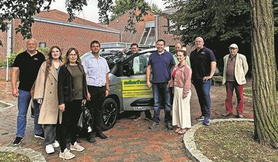 Lilienthal. Mit Hilfe von 29 Werbepartner:innen konnte der neue 7-Sitzer-Dienstwagen finanziert werden. Bei der symbolischen Übergabe wurde er im Beisein einiger Partner:innen dankend von Bürgermeister Kim Fürwentsches in Empfang genommen werden. Das Fahrzeug wird von den Mitarbeitenden der Gemeindeverwaltung für Dienstfahrten genutzt und löst einen nicht-elektronischen Vorgänger ab. Besonders für den Transport größerer Gruppen bietet der neue Wagen Vorteile gegenüber den anderen vier Fahrzeugen im Dienstwagen-Pool der Verwaltung. Gleichzeitig ist es das zweite Elektrofahrzeug und damit ein weiterer Schritt in Richtung nachhaltiger Mobilität.