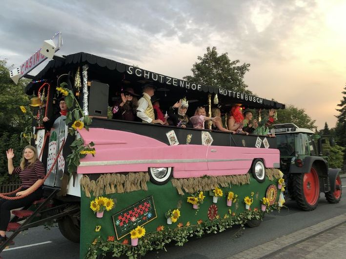 Um 16 Uhr setzt sich der Festumzug in Bewegung. Die Route führt quer durchs Dorf: von der Hüttendorfer Straße über die Heudorfer Straße, den Nullgrabendamm, die Schulstraße und die Hüttenbuscher Straße bis hin zum Festplatz. Hier kommen alle zusammen, um die geschmückten Wagen und die vielen Fußgruppen zu bestaunen – ganz klassisch mit Musik, guter Laune und dem einen oder anderen Zwischenstopp am Straßenrand.