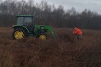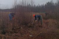 15 hoch motivierte Teilnehmer*innen befreiten das Hochmoor östlich von Sandhausen auf einer Fläche von ca. 2 Hektar von kleineren Bäumen, Brombeeren und Büschen (Entkusselung) und entsorgten in Zusammenarbeit mit ortsansässigen Landwirten den Grünschnitt.
