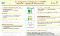 Die grundsätzlichen Regeln sind: 2G in Heimen und Einrichtungen für ältere und pflegebedürftige Menschen, 3G bei Präsenz am Arbeitsplatz (täglicher Test), sofern kein Home-Office möglich ist und 3G im öffentlichen Personen- und Nahverkehr, also in Bussen, Bahnen und Flugzeugen (wird stichprobenartig kontrolliert.)
