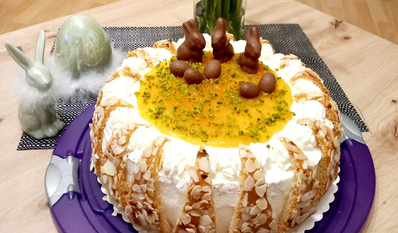 Diese Torte ist sowas von lecker (ich habe von der Creme probiert), sie geht morgen schon wieder auf Reisen. Ich backe sie zu Ostern aber nochmal.