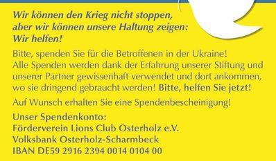 Bitte, spenden Sie für die Betroffenen in der Ukraine. Alle Spenden werden dank der Erfahrung unserer Stiftung und unserer Partner gewissenhaft verwendet und dort ankommen, wo sie dringend gebraucht werden! Bitte, helfen Sie jetzt.